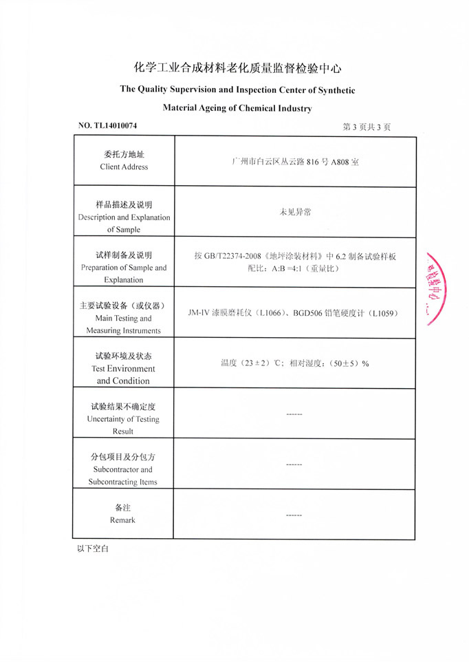 環氧自流平地坪漆檢驗證書